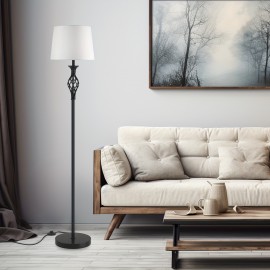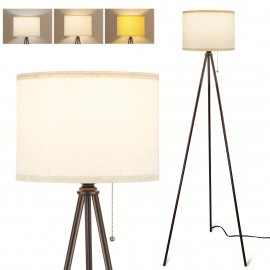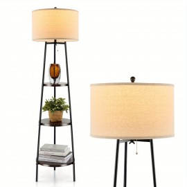 Fabric Double-head Floor Lamp, Linen, With 1 E26 Bulb And 1 E12 Bulb